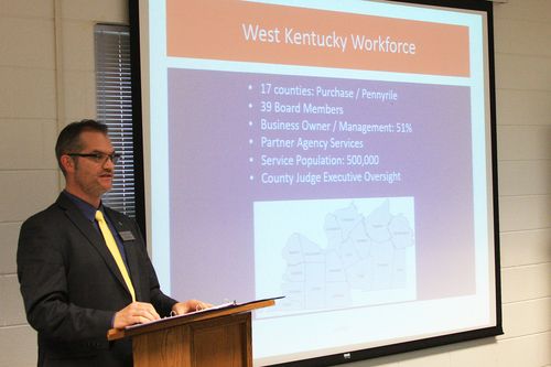 Derek Poor, WKWB Veterans Transition Liaison, visited Madisonville on February 22 to speak at the Madisonville Noon Kiwanis Club on how the workforce board is assisting transitioning military, veterans and spouses with finding high demand/high wage occupations in the region. He also gave some insight on how communities can take part in reaching out to these individuals in hopes to keep them in the area. For more information on how the WKWB assists with military/veteran efforts, click here.