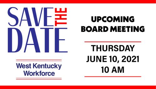 Please mark your calendars for the next West Kentucky Workforce Board meeting. Thank you for your interest in the WKWB and its activities. Please notify Melissa Thompson ([email protected]) with questions or concerns.