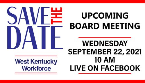Please mark your calendars for the next West Kentucky Workforce Board meeting. Thank you for your interest in the WKWB and its activities. Please notify Melissa Thompson ([email protected]) with questions or concerns.